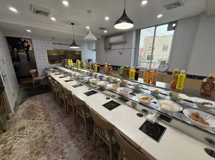 店铺整体一层位于二楼,内部宽敞无柱,方正实用。店内现经营知名品牌小火锅项目,带全套转台设备,自助取餐,无需厨师,简单易上手,无论是有无经验的老板,都可轻松接店。本店已营多年,在附近当地积累有一定老顾客回头客,生意营收稳定,并非做不下去才转让。当下临近年底,接手正值旺季,好位置店手慢无!